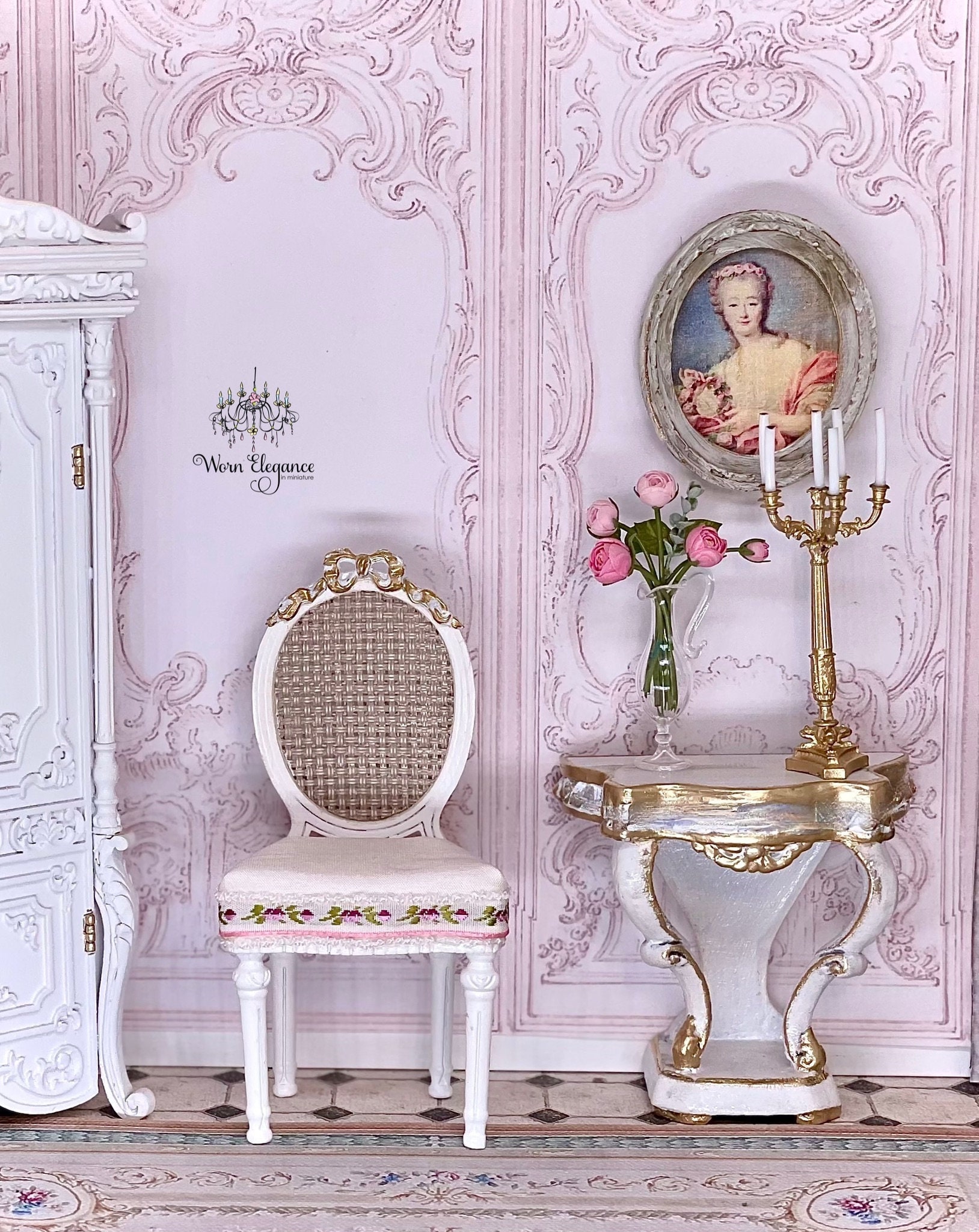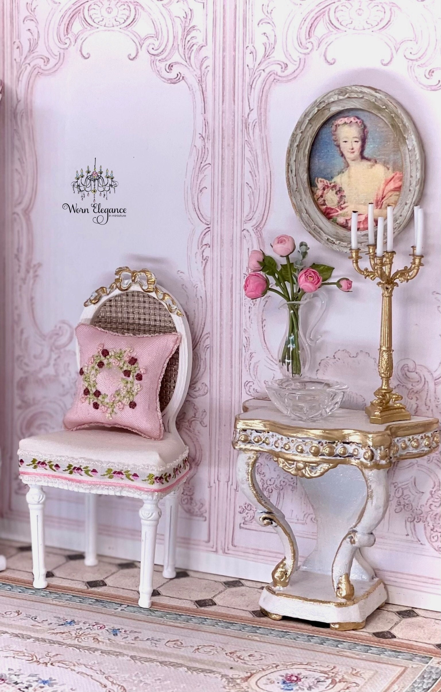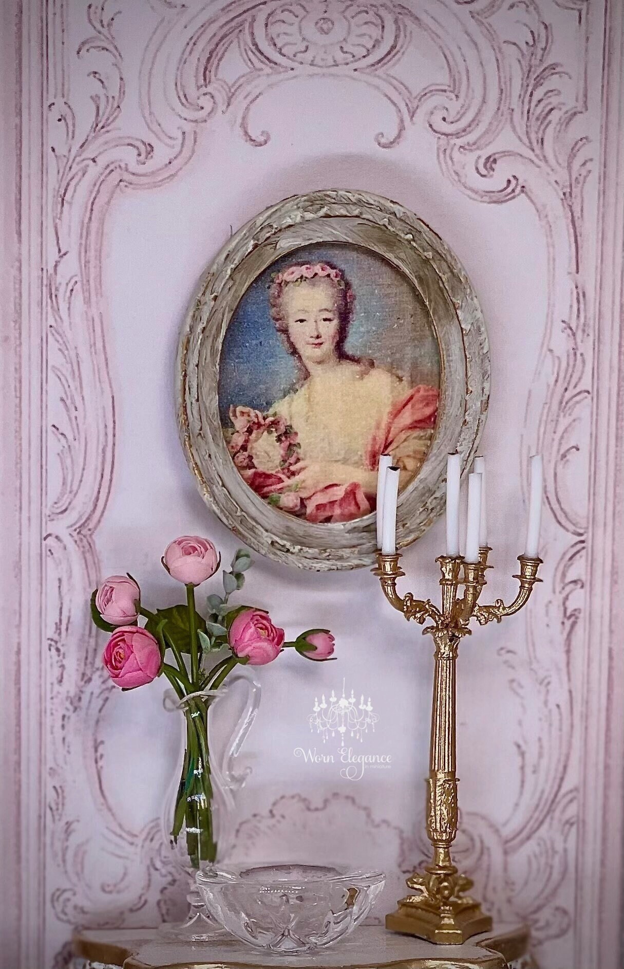 18th c. French Lady Portrait in Oval Frame, 1:12, Artisan Made- France, Dollhouse Miniature, Framed Portrait, Wall Art, OOAK, French decor