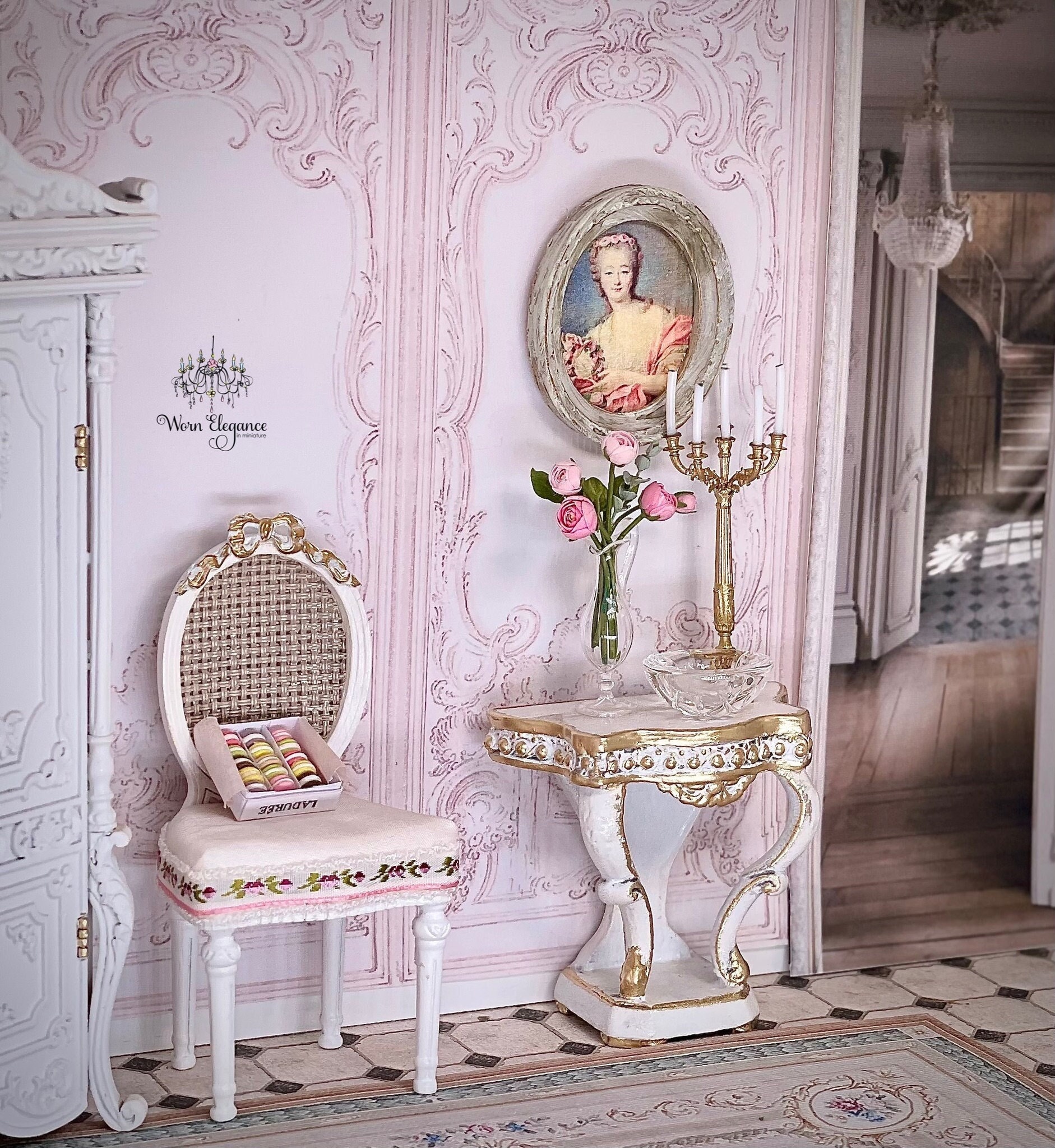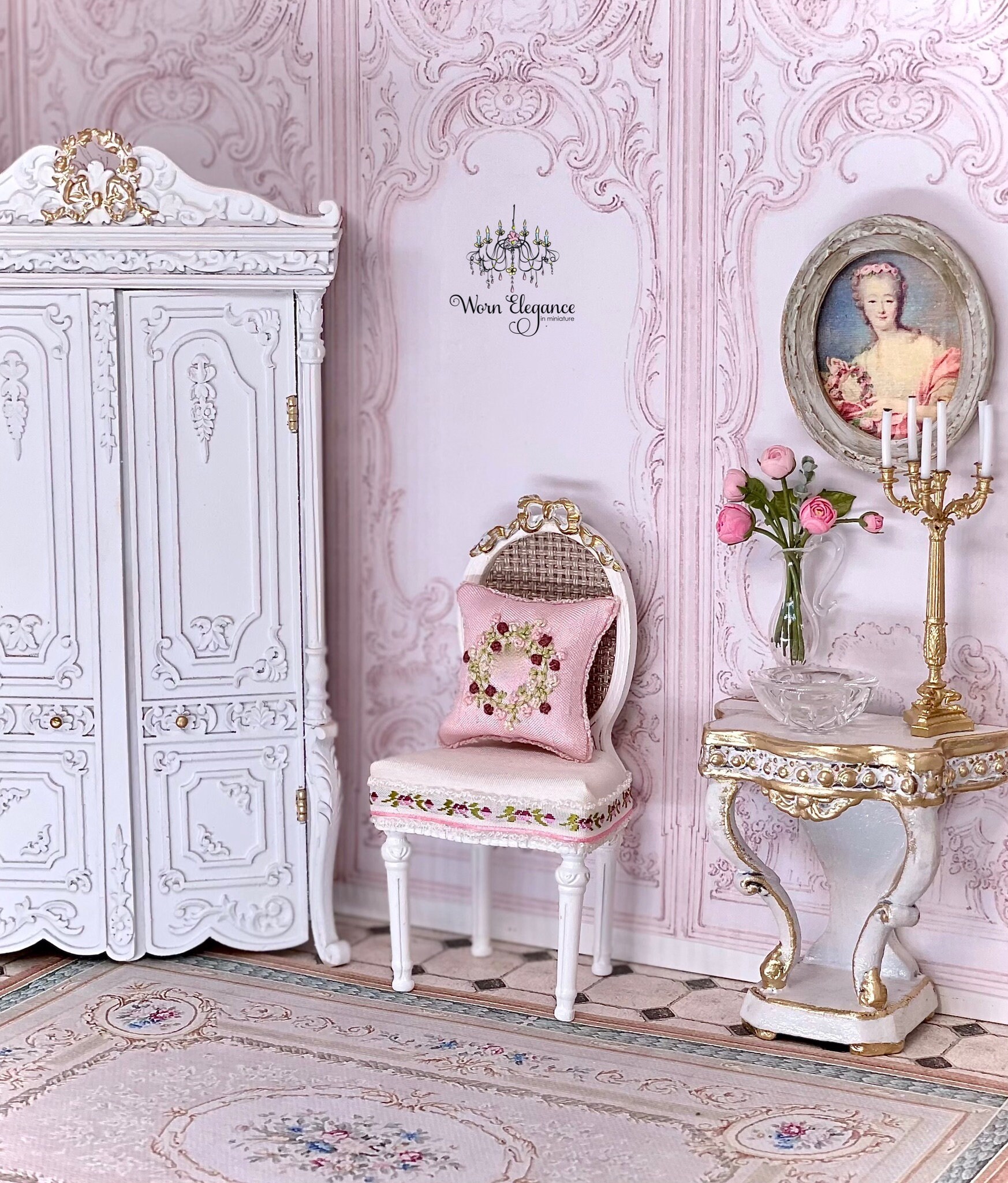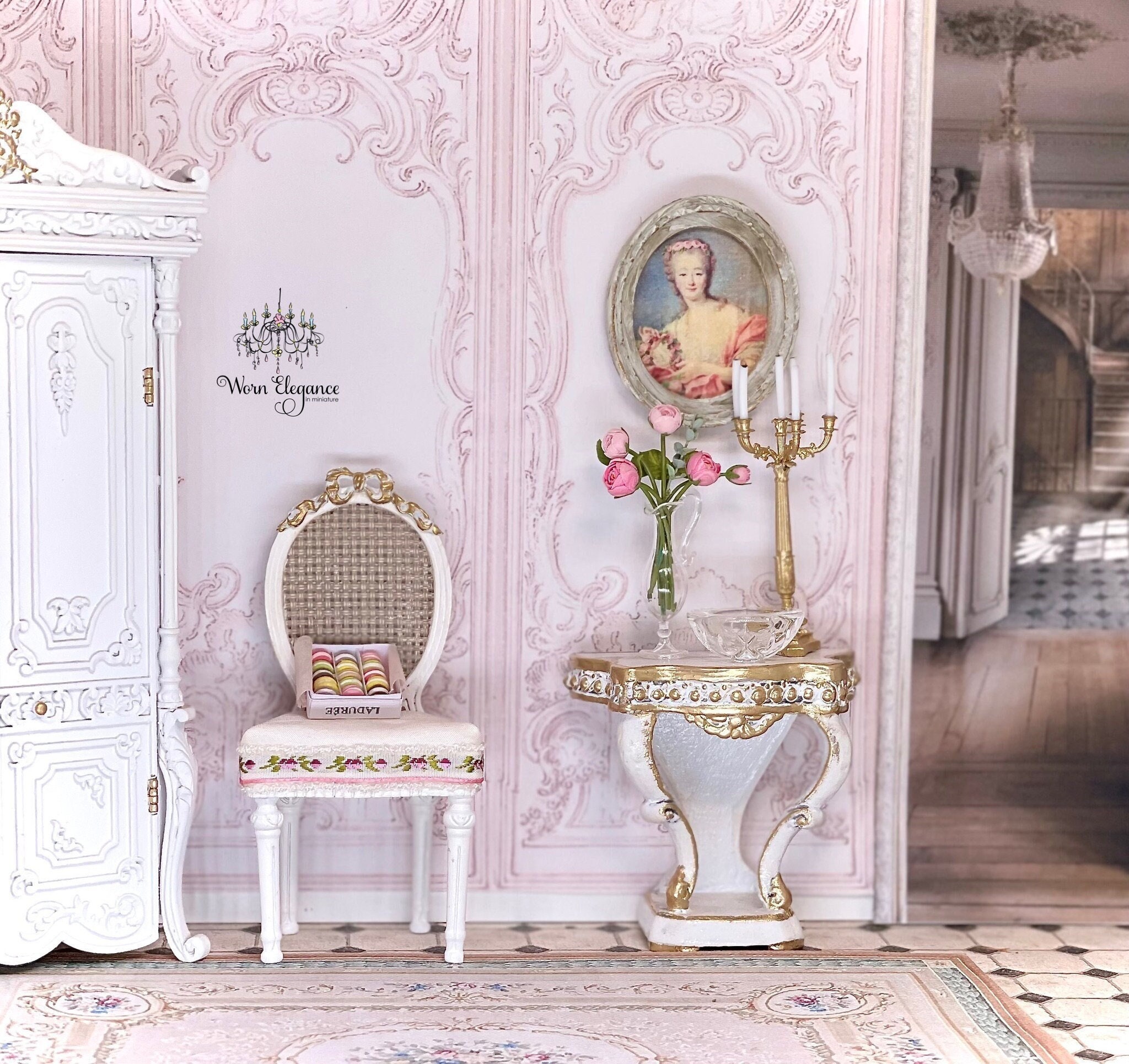 18th c. French Lady Portrait in Oval Frame, 1:12, Artisan Made- France, Dollhouse Miniature, Framed Portrait, Wall Art, OOAK, French decor