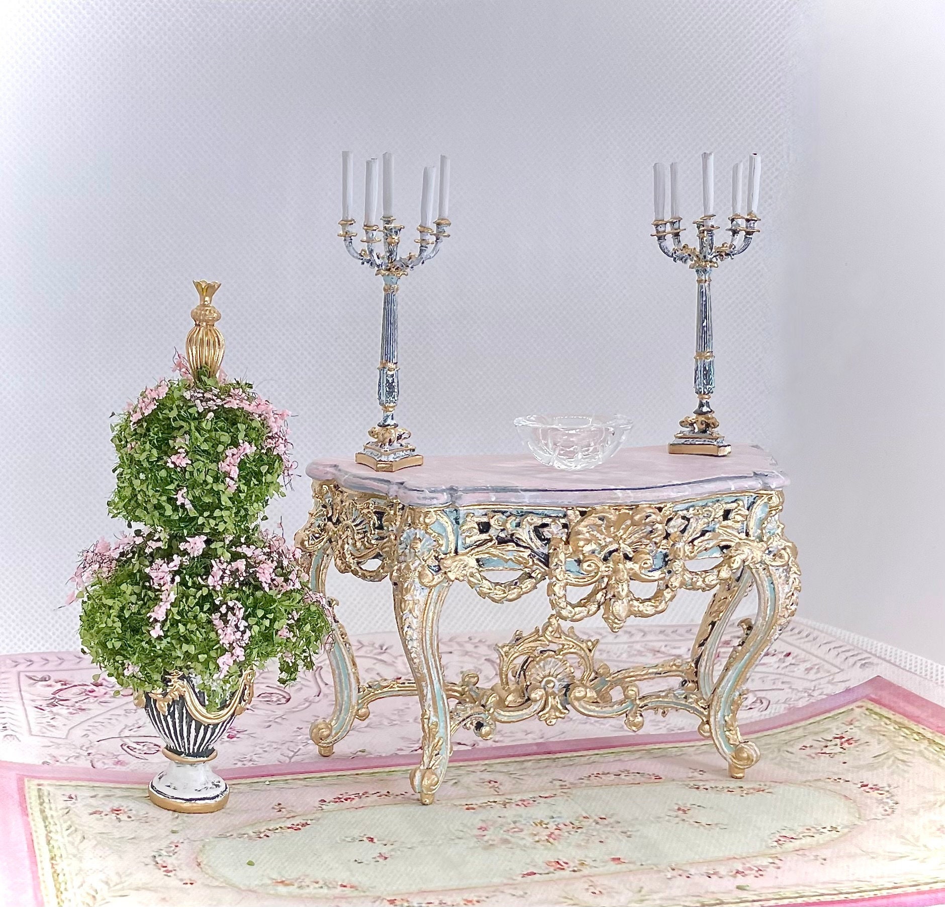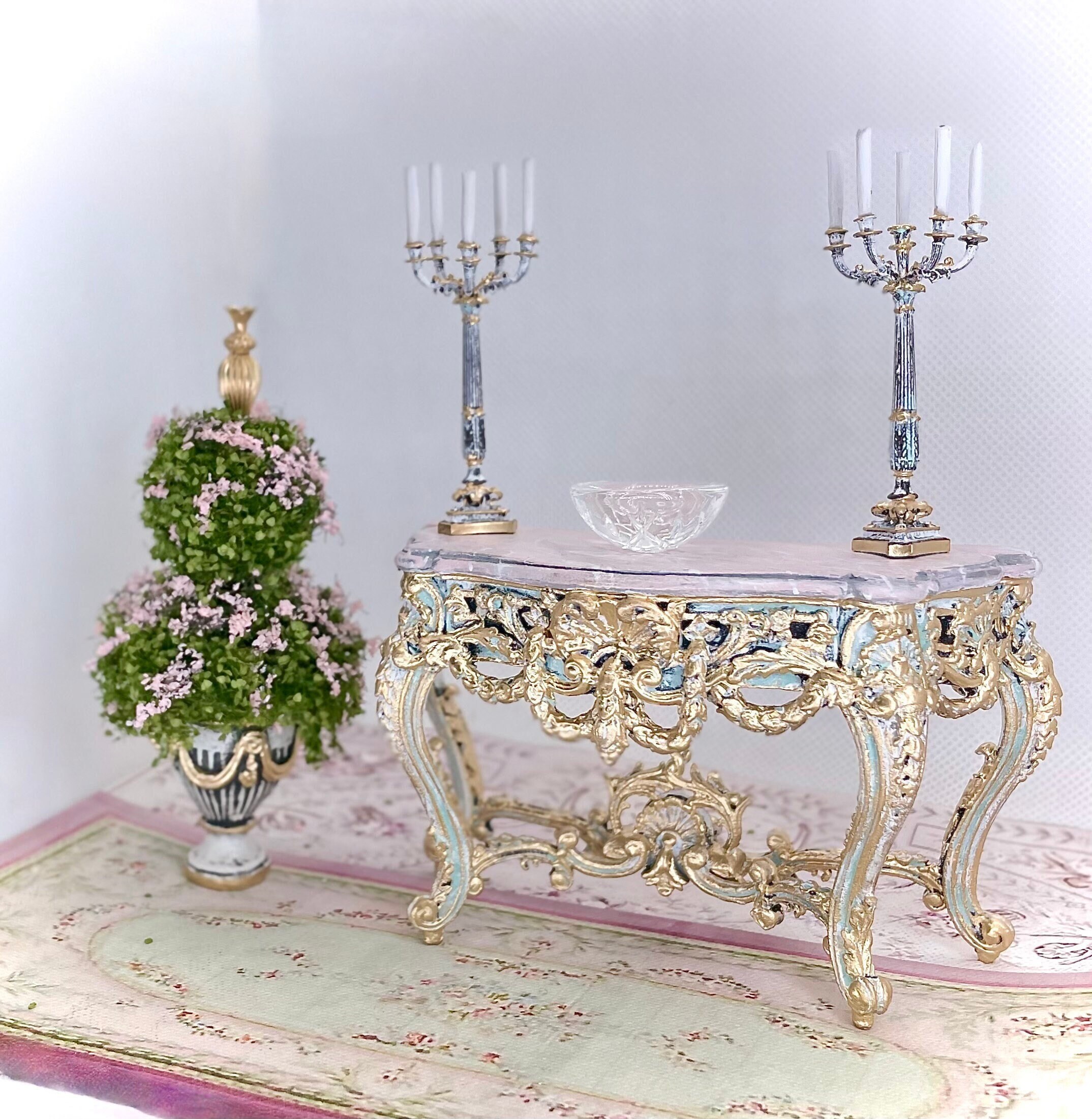 Fabulous Pair of French Candelabras, 1:12, 5 Arm Candelabras, Antiqued, Gilded Accents, Amazing Details!, Artisan, OOAK, 10 Candles Attached