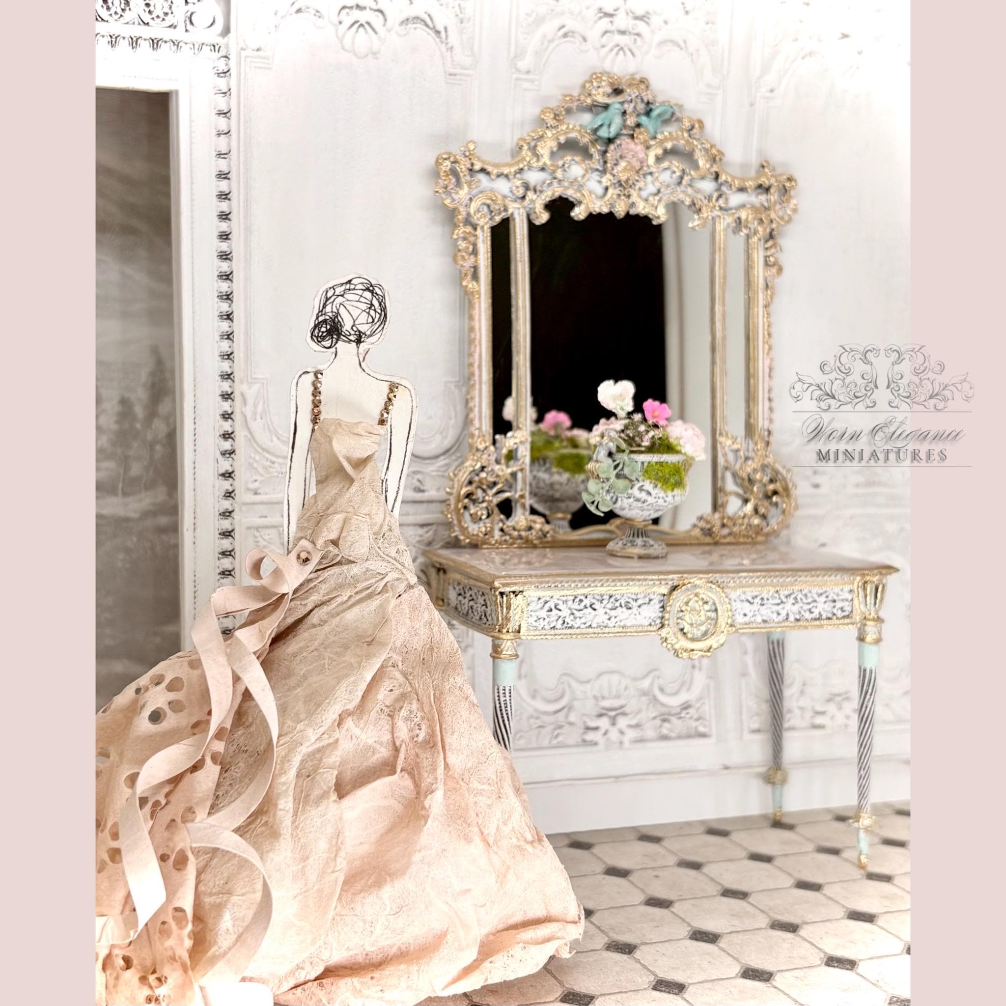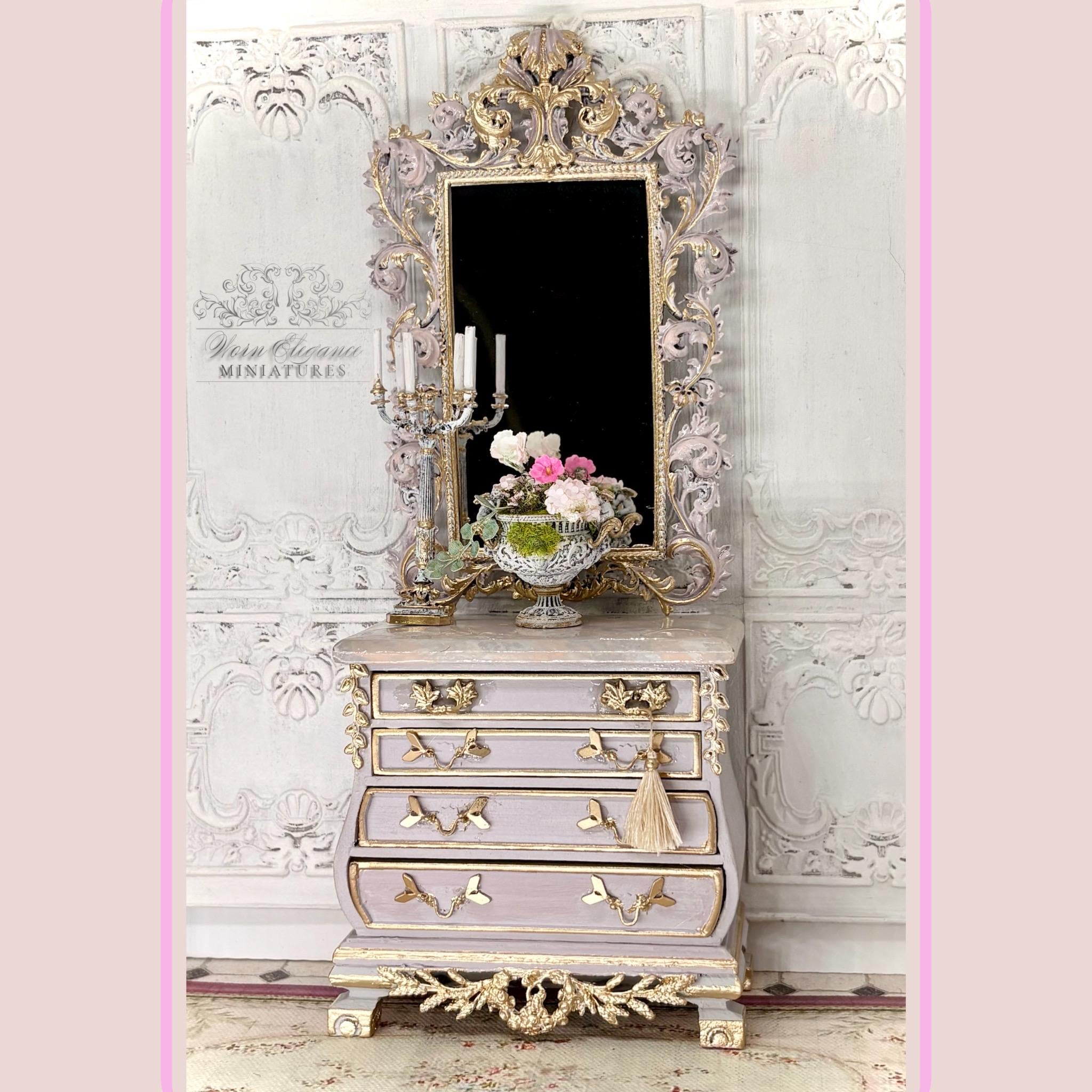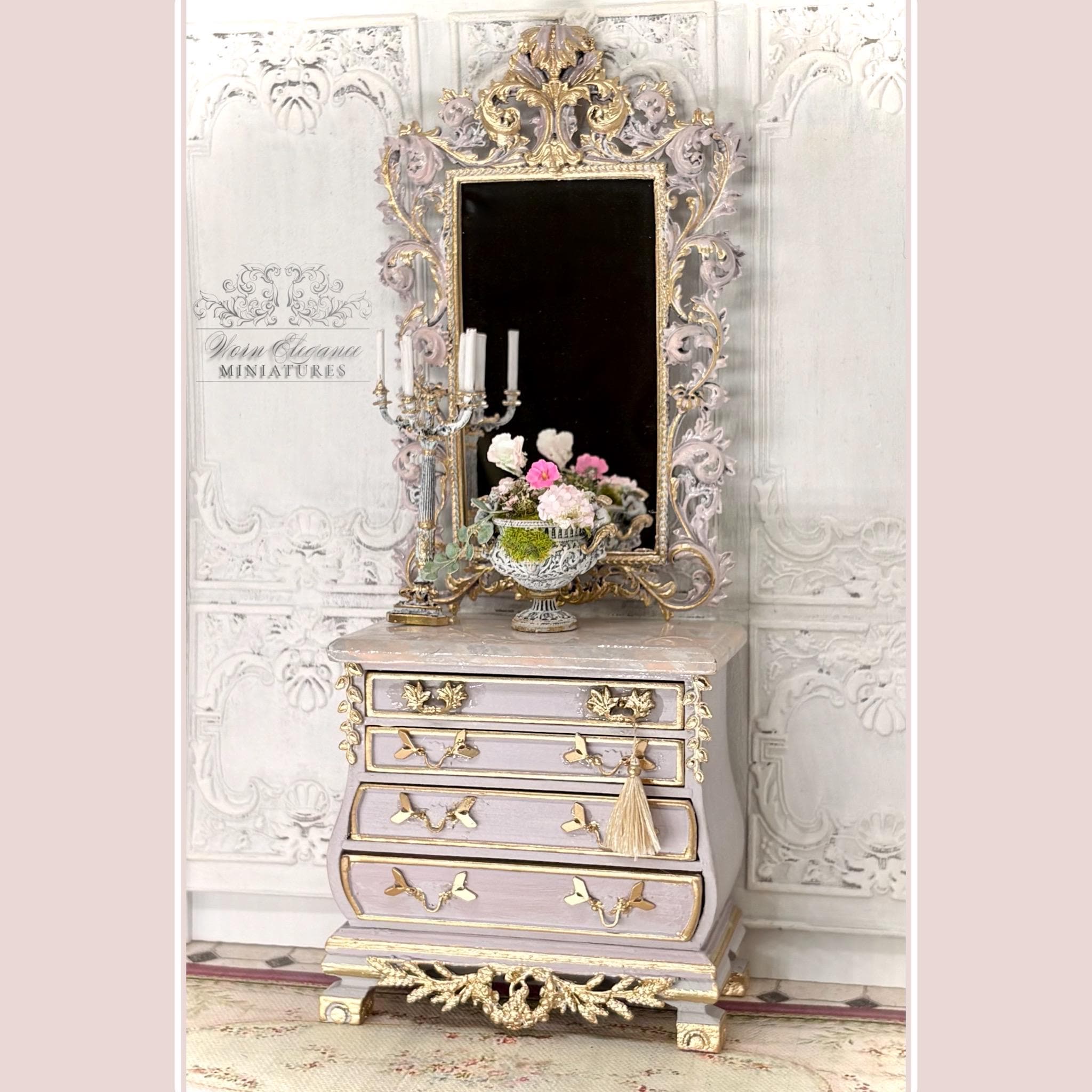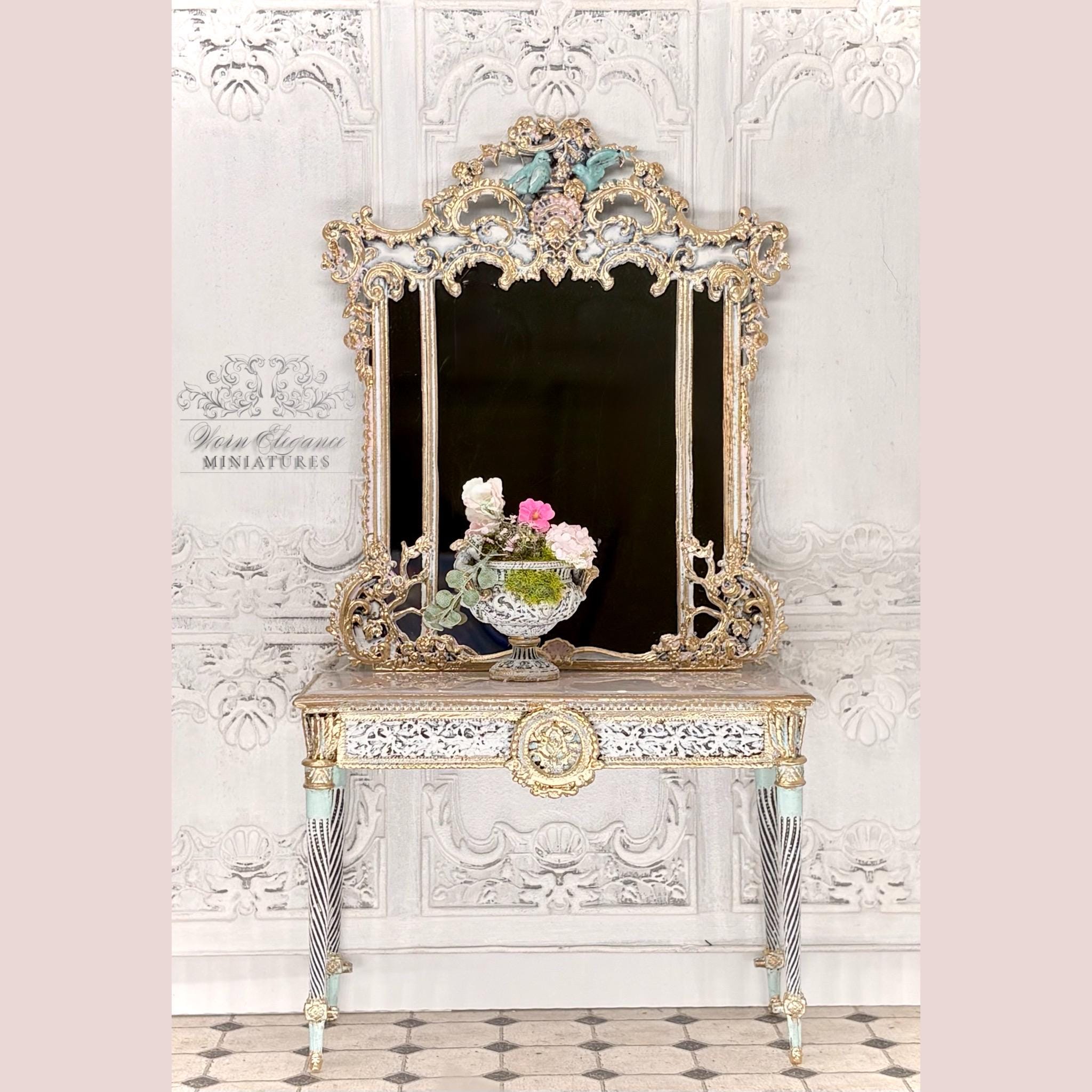 Dollhouse Miniature Floral Arrangement in Carved French Urn Planter, 1:12, Artisan, Flowers, Greenery, Lightly Gilded, OOAK, Elegant Decor