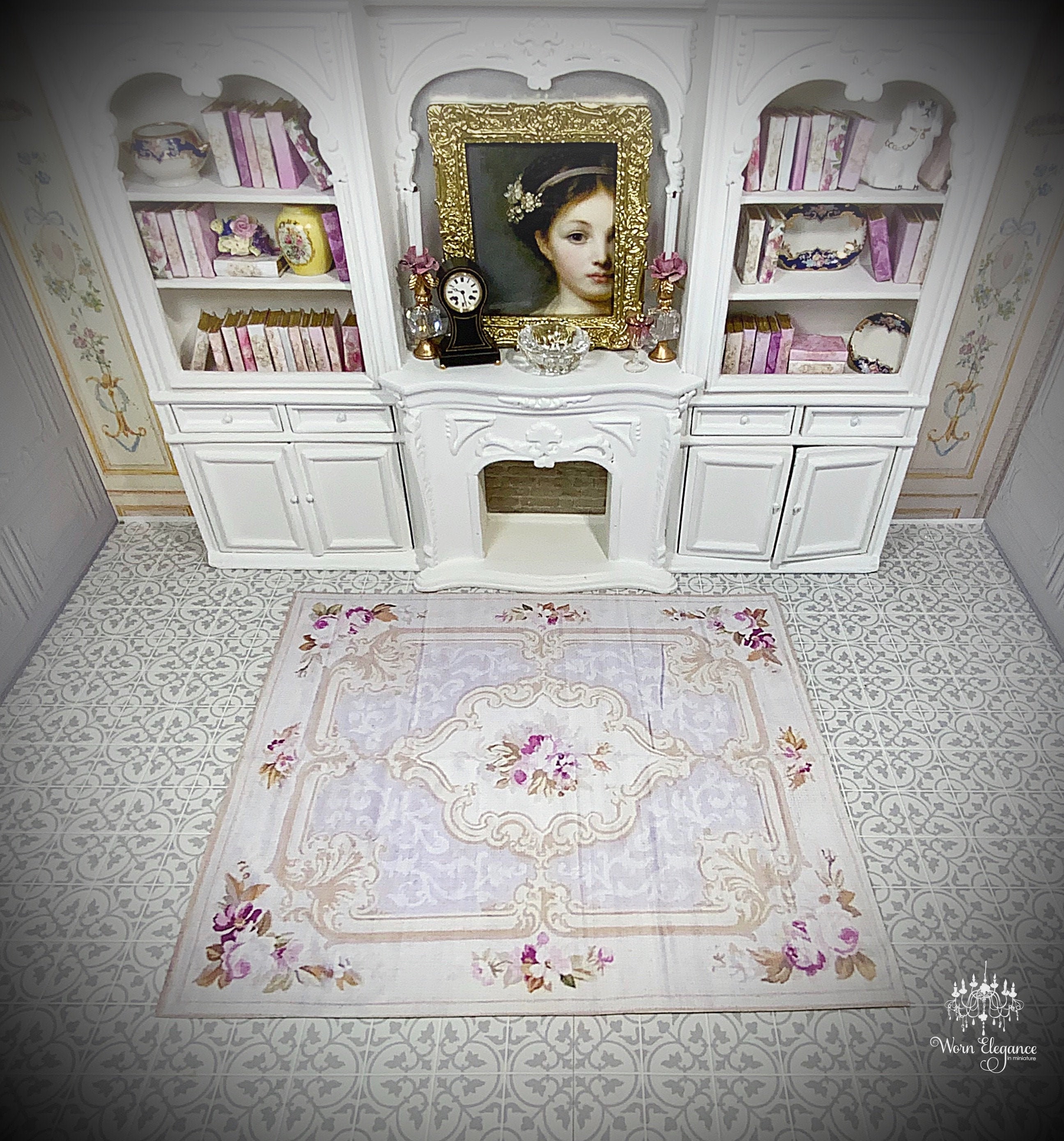 Dollhouse Miniature Rug #34, 1:12, French Style Rug, Reproduction Antique Rug, Floor Covering, Lilac and Deep Pinks, Canvas, Floor Covering