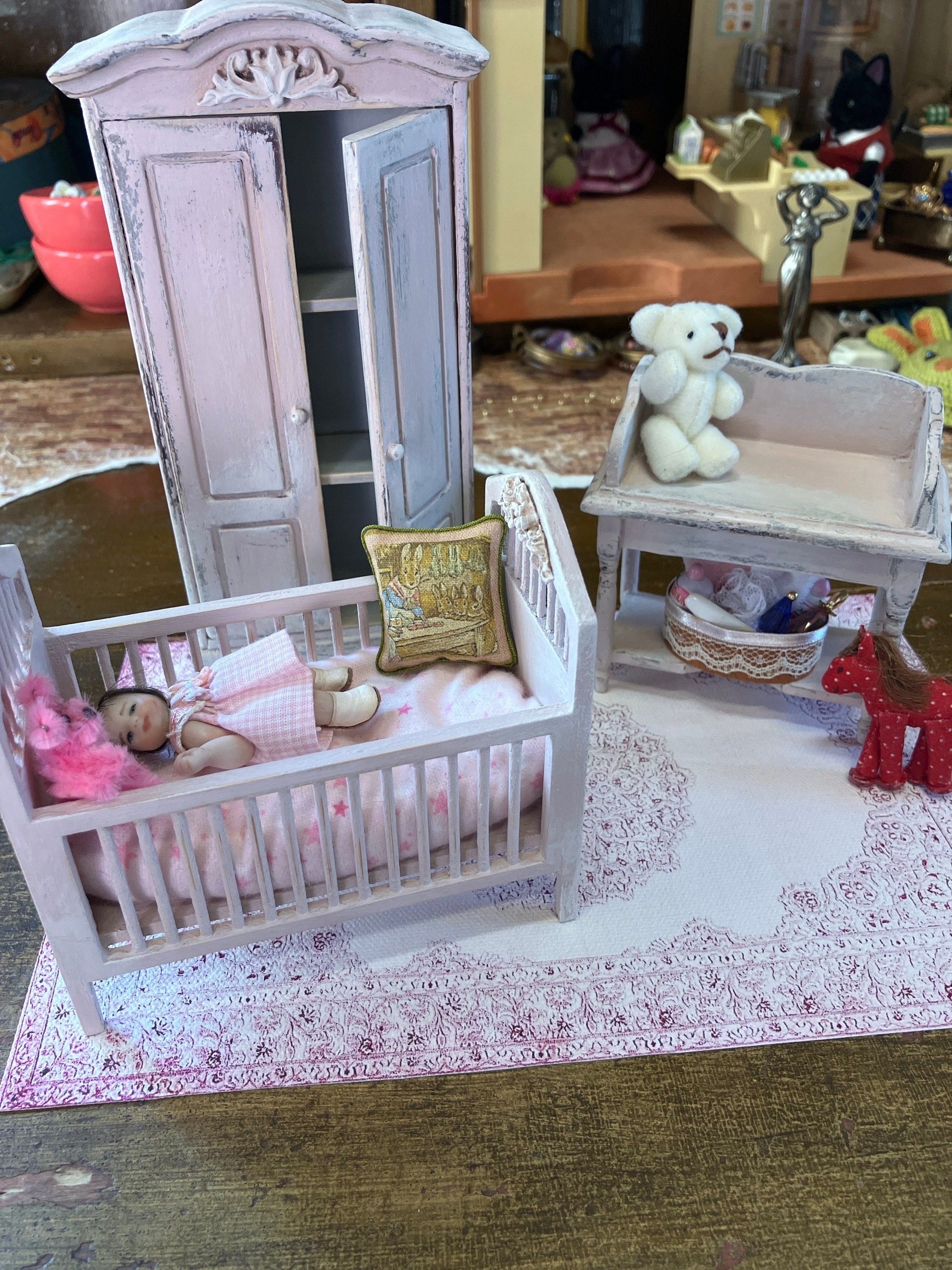 NEW! Dollhouse Rug #16, 1:12, Miniature, Floor Covering, Pale Dusty Pink, Textured Rug Style, Printed on Detail Canvas, Realistic, Weight,